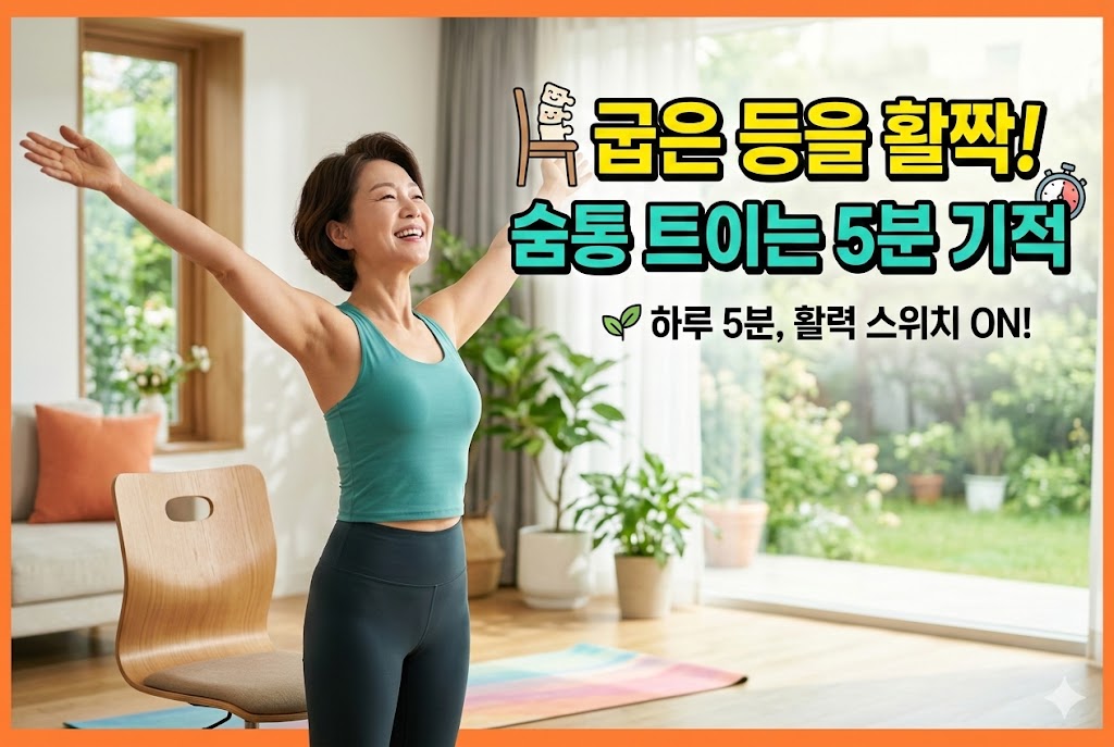 혹시 요즘 부쩍 숨이 차거나, 조금만 앉아 있어도 어깨 위에 돌덩이를 얹은 듯 무거우신가요? 많은 분이 이를 단순한 기력 저하로 생각하시지만, 사실은 '닫힌 몸'이 원인일 가능성이 큽니다. 나이가 들수록 중력의 영향과 생활 습관으로 인해 어깨는 안으로 말리고, 등은 굽어지게 됩니다. 이번 스트레칭은 단순히 자세를 예쁘게 만드는 것을 넘어, 여러분의 '숨길'을 열어주는 생존의 기술입니다. 지금 바로 의자에서 등을 떼고, 두 번째 청춘을 위한 기지개를 켜보세요! 🚀